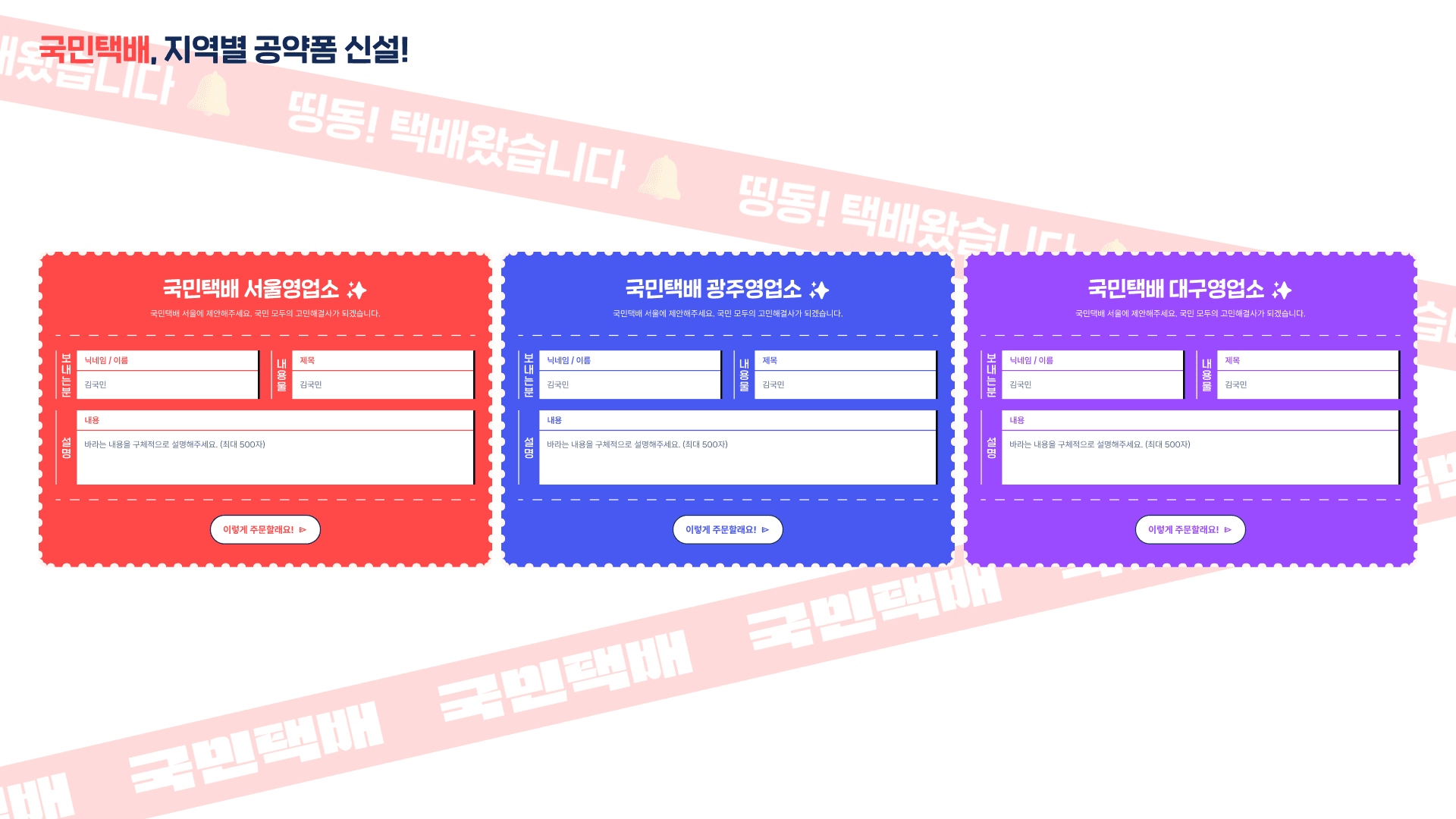 현장에서는 ‘국민택배 1호·2호·3호’처럼 넘버링된 테마별 이벤트를 운영했습니다.